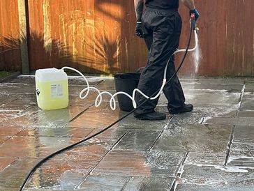 Sodium Hypochlorite soft-wash treatment for removal of stubborn build-up, black and white spot. This treatment works to penetrate and lift, effectively removing stains that are resistant to shop bought cleaning products.